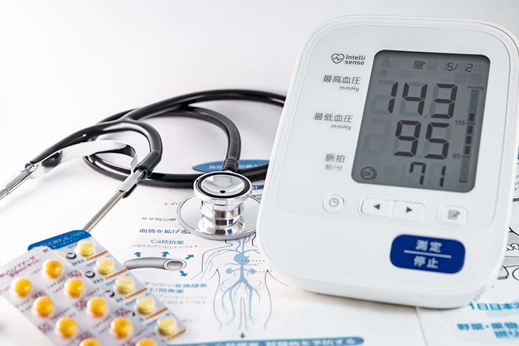 心臓から各器官へ向けて血液が送られる際に血管壁にかかる圧力のことを血圧と言います。血圧には、収縮期血圧(最高血圧:心臓から血液を送り出す際の血圧)と拡張期血圧(最低血圧:心臓が拡張し、血液を送られる状態になった際の血圧)があるのですが、血圧測定の際に収縮期血圧が135mmHg以上、拡張期血圧が85mmHg以上と判定されると高血圧と診断されます。この状態が続くと、心臓から常に負荷をかけた状態で血液を送らねばならず、血管壁も常にそれに耐えられるよう硬化していくようになります。慢性的に血圧が高くなっても自覚症状は現れることはないので、症状は進行し、やがて動脈硬化が起きるようになります。動脈硬化は血管を脆くさせるので、血流を悪くさせたり、血管を詰まらせるなどして、狭心症や心筋梗塞、脳卒中、腎不全といった重篤な病気を起こしやすくします。